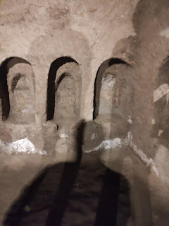 Zwiedzanie katakumb jest tylko z przewodnikiem, który mówi po włosku lub angielsku. My wybraliśmy angielskiego, ale i tak nie zrozumieliśmy wszystkiego.Pani mówiła szybko,z włoskim akcentem i to w maseczce.Po pogrzebie ciała były wrzucane przez specjalny otwór.